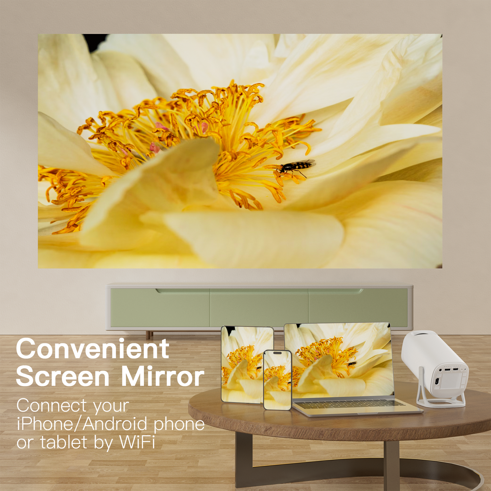 The Ismartx-8 projector is pre-installed with WiFi projection software, which can be connected to Android/iPhone phones or laptops to use the mirroring function. Just connect to the same WiFi to connect the device and play the pictures or videos on your device.
